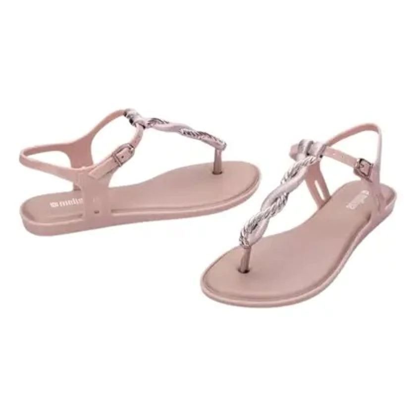 MELISSA SOLAR TWIST 36042 ORIGINAL A Melissa Solar Twist é o toque extra de estilo e praticidade que os seus looks merecem. Com uma tira entrelaçada e detalhes metalizados que exalam sofisticação, essa rasteirinha é a escolha certa para as M-Lovers que buscam peças versáteis e modernas para complementar o visual. A Melissa Solar Twist garante uma experiência leve e confortável para os dias de calor, bestie! Mais características da Melissa Solar Twist: